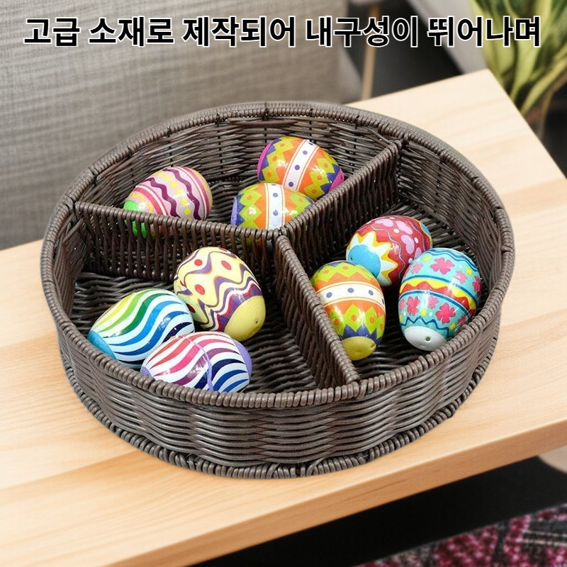● 세련된 디자인과 실용성을 겸비한 거실 커피 테이블용 과일 및 견과류 보관 바구니로, 공간을 깔끔하게 정리할 수 있습니다. ● 칸막이 구조로 다양한 종류의 과일과 견과류를 분리하여 보관할 수 있어 신선함을 오래 유지합니다. ● 고급 소재로 제작되어 내구성이 뛰어나며, 집안 어디에나 잘 어울려 인테리어 소품으로도 손색이 없습니다. ● 손잡이가 있어 이동이 편리하고, 세척이 간편하여 위생적으로 사용할 수 있습니다. ● 넉넉한 수납 공간을 제공하여 가족 모임이나 손님 접대 시에도 실용적으로 활용할 수 있습니다.